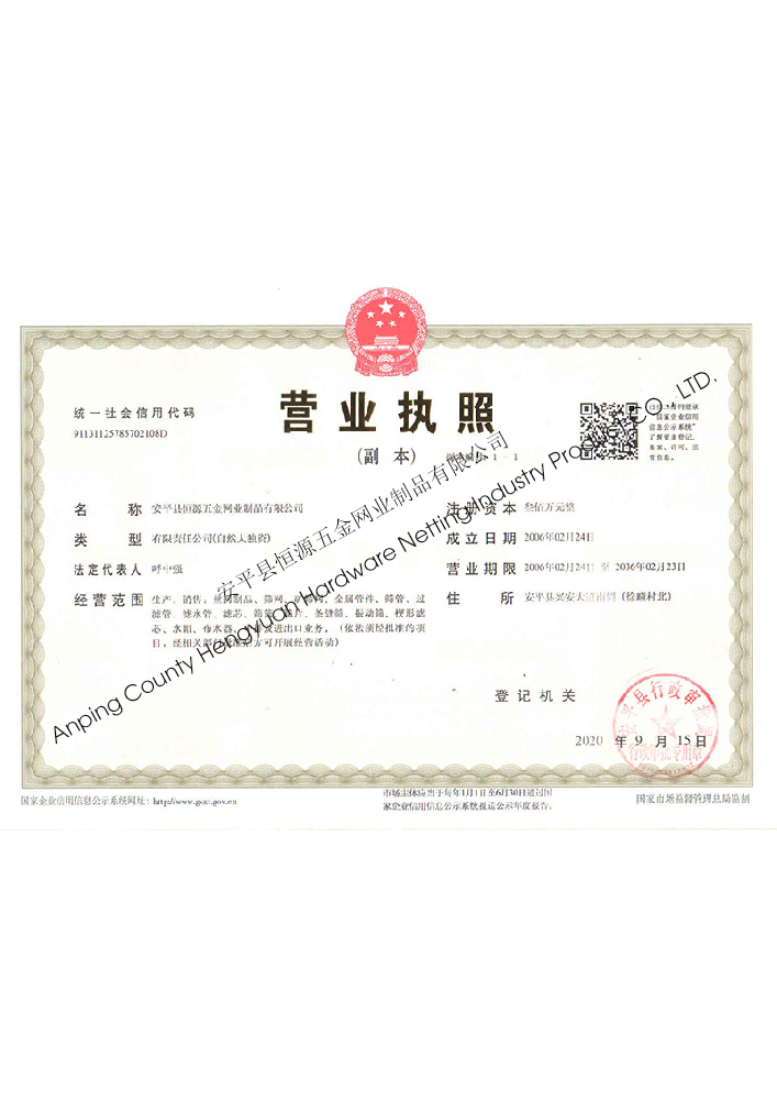 安平縣恒源五金網業制品有限公司 Anping County Hengyuan Hardware Netting Industry Product CO., LTD.